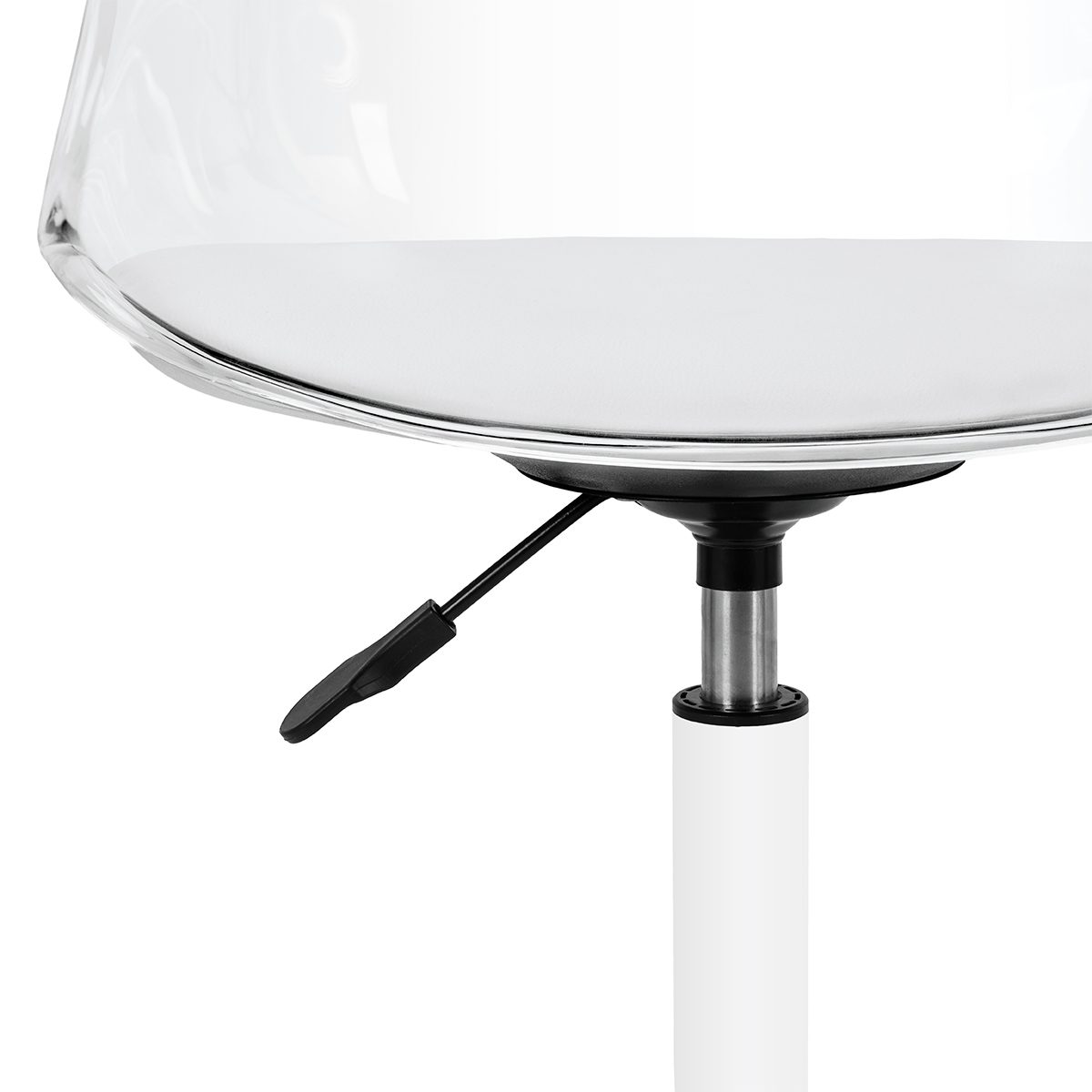Malli vangitsee katseet näyttävällä, läpinäkyvällä selkänojallaan, joka antaa kokonaisuudelle kevyen ja modernin luonteen. Läpinäkyvän rakenteen, valkoisella synteettisellä nahalla verhoillun istuintyynyn ja valkoisen jalustan yhdistelmä luo hienostuneen kontrastin, joka korostaa eleganssia. Tämä tekee tuolista paitsi toiminnallisen huonekalun, myös tyylikkään sisustuselementin. Se sulautuu täydellisesti mihin tahansa sisustukseen ja sopii erinomaisesti nykyaikaisten kauneushoitoloiden estetiikkaan.