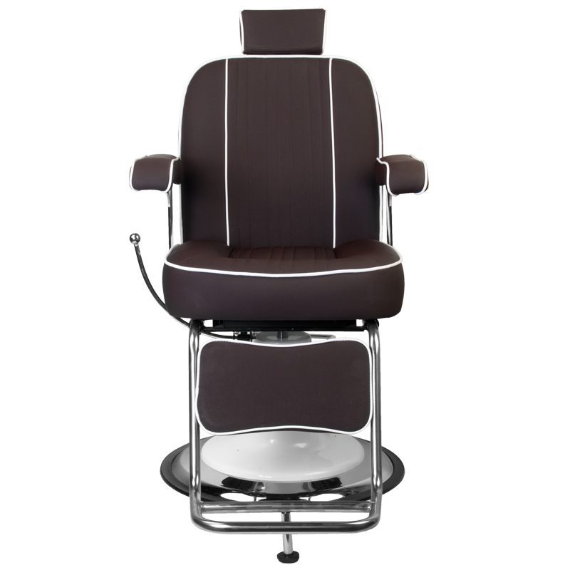 Mukava ja moderni parturituoli pää- ja jalkatuella. Täydellisesti viimestelty. Kallistettava selkänoja ja korkeuden säätö. Pienikokoinen ja edullinen. Päällystetty helppohoitosella ja korkealaatuisella tekonahalla. Vakaa jalusta.