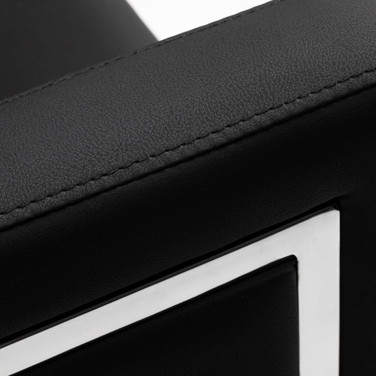 Nojatuoli on verhoiltu tekonahalla ja pyörii oman akselinsa ympäri.
