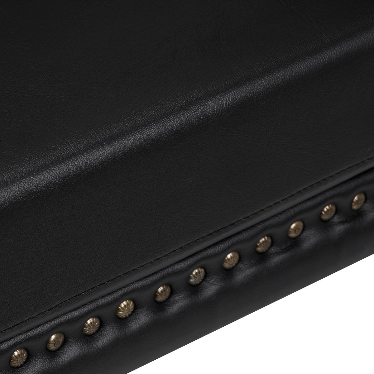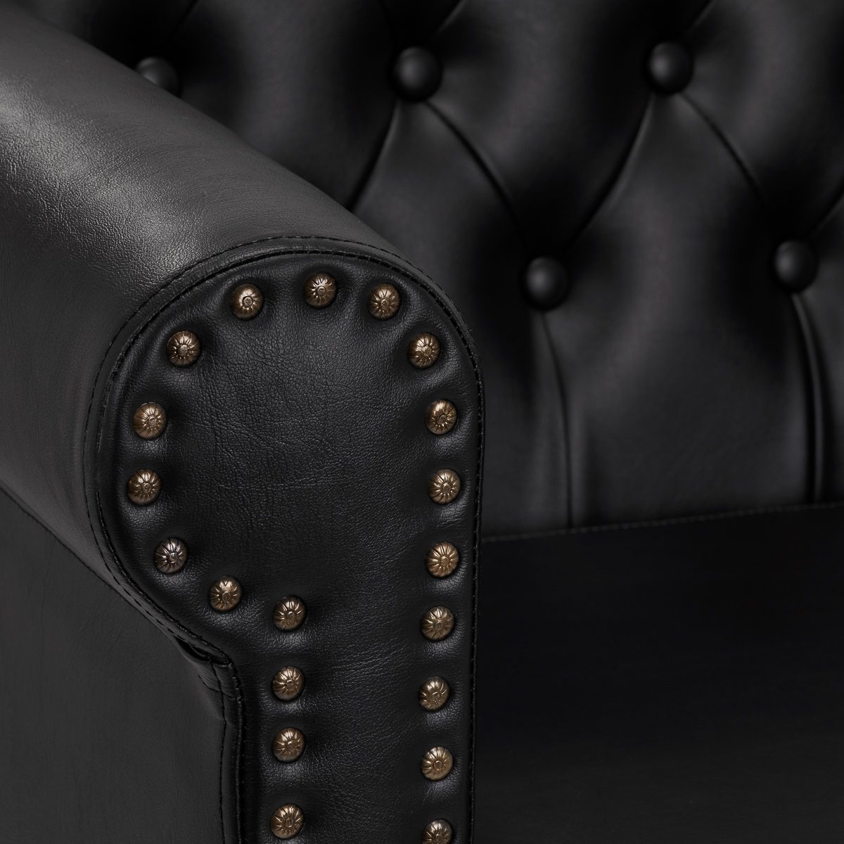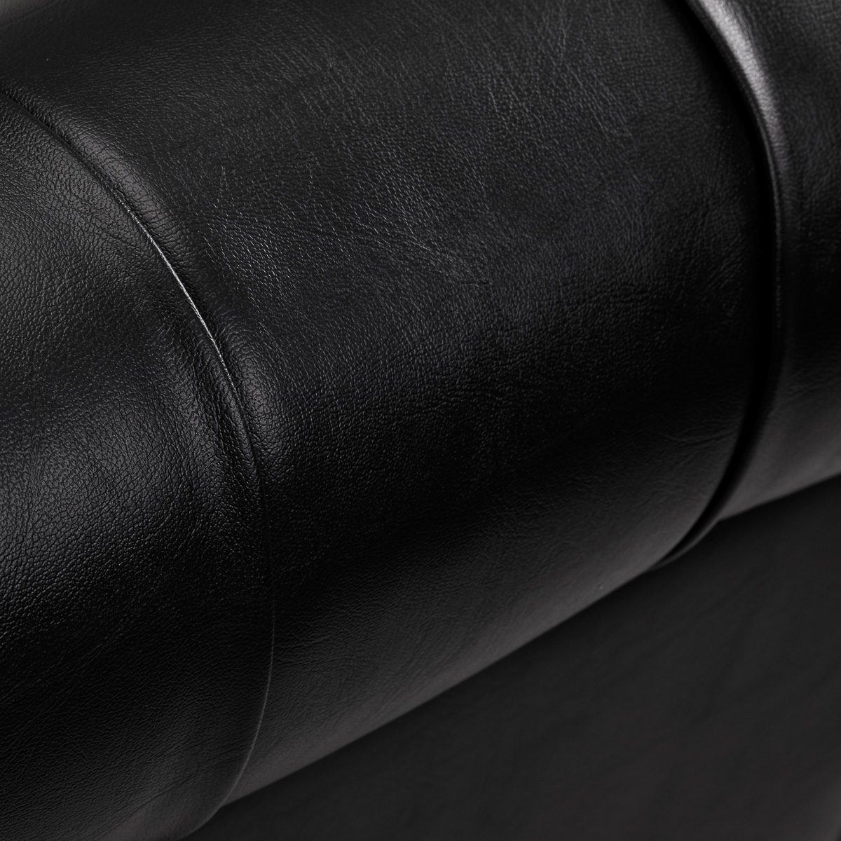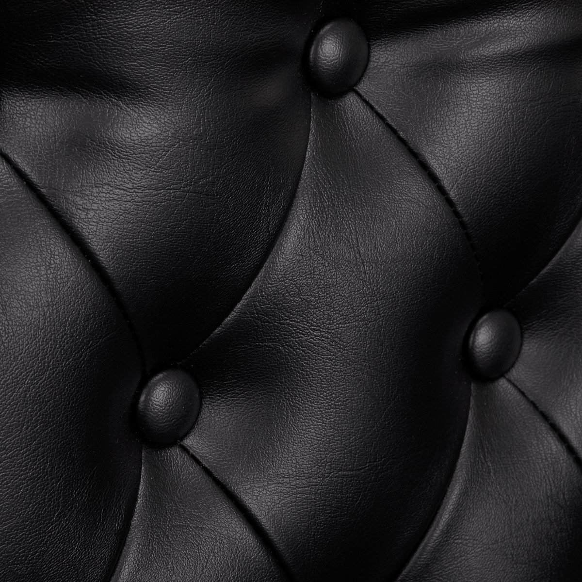 Nojatuoli on verhoiltu tekonahalla ja pyörii oman akselinsa ympäri.
