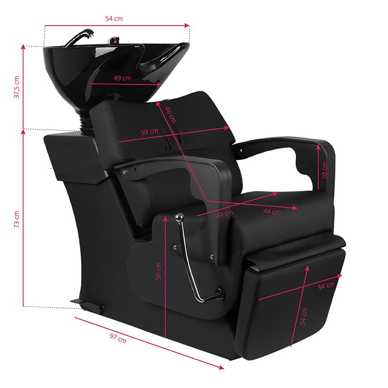 Tyylikäs, täydellisesti viimeistelty pesupaikka, joka antaa asiakkaalle maksimaalisen mukavuuden hoitojen aikana. Mukava tuoli on päällystetty korkealaatuisella tekonahalla.