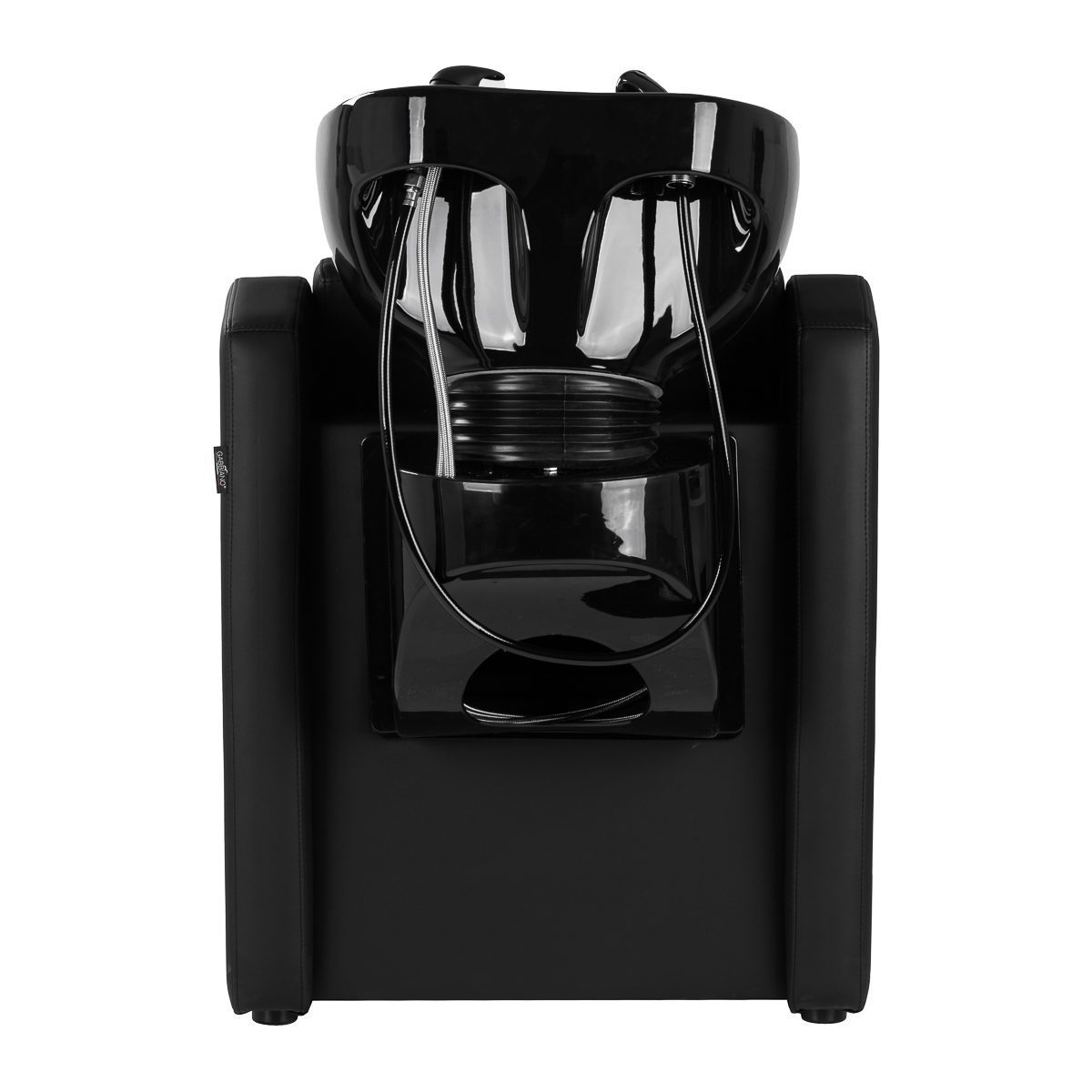 Syvä musta pesuallas auttaa tehokkaasti estämään veden ja hoitotuotteiden roiskumista hoidon aikana. Altaan kallistuskulmaa voi säätää asiakkaan tarpeiden mukaan, mikä helpottaa työskentelyä ja lisää ergonomiaa. Kestävä ja helposti puhdistettava keramiikka säilyy siistinä pitkään – se on vastustuskykyinen naarmuille ja värjäymille. Muotoiltu niskatuki takaa hyvän pään asennon, ja musta muovinen pehmuste tuo lisämukavuutta suojaten kylmältä pinnalta.