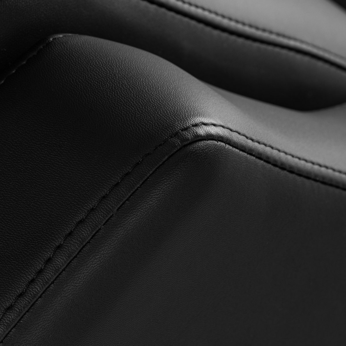 Funktionaalinen, tukevalla vaahtomuovilla täytetty istuin tukee lannerankaa ja lisää asiakkaan mukavuutta. Verhoillut käsinojat mahdollistavat hartioiden luonnollisen asennon, mikä helpottaa rentoutumista hoidon aikana. Pehmeäpintainen synteettinen nahka on miellyttävä käyttää, kestävä, kosteutta hylkivä ja helppo pitää puhtaana. Moderni muotoilu ja musta viimeistely tuovat tilaan arvokasta ilmettä. Mukana toimitetaan täysi asennusvalmis hanasarja: musta sekoitushana, suihkupää ja letkut.