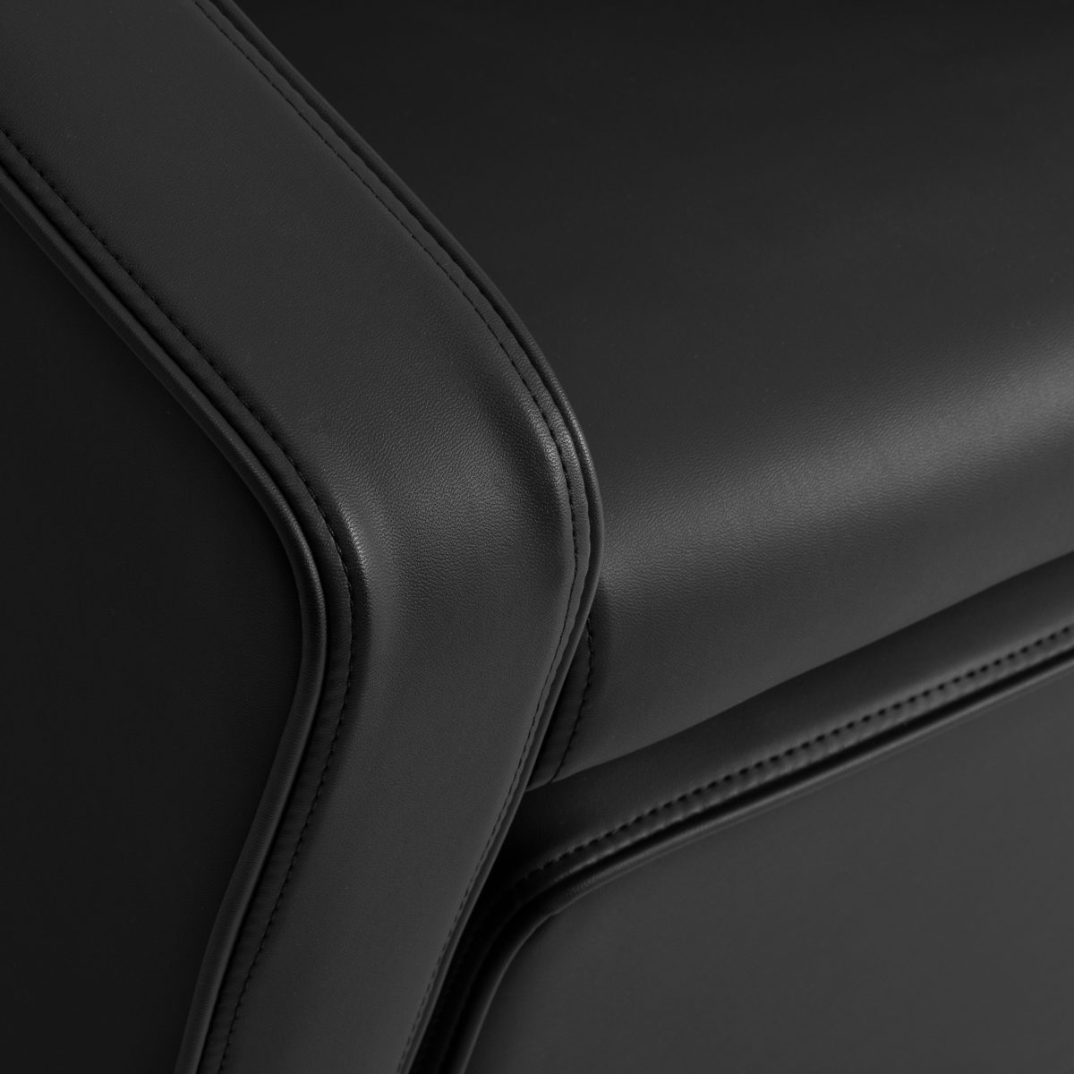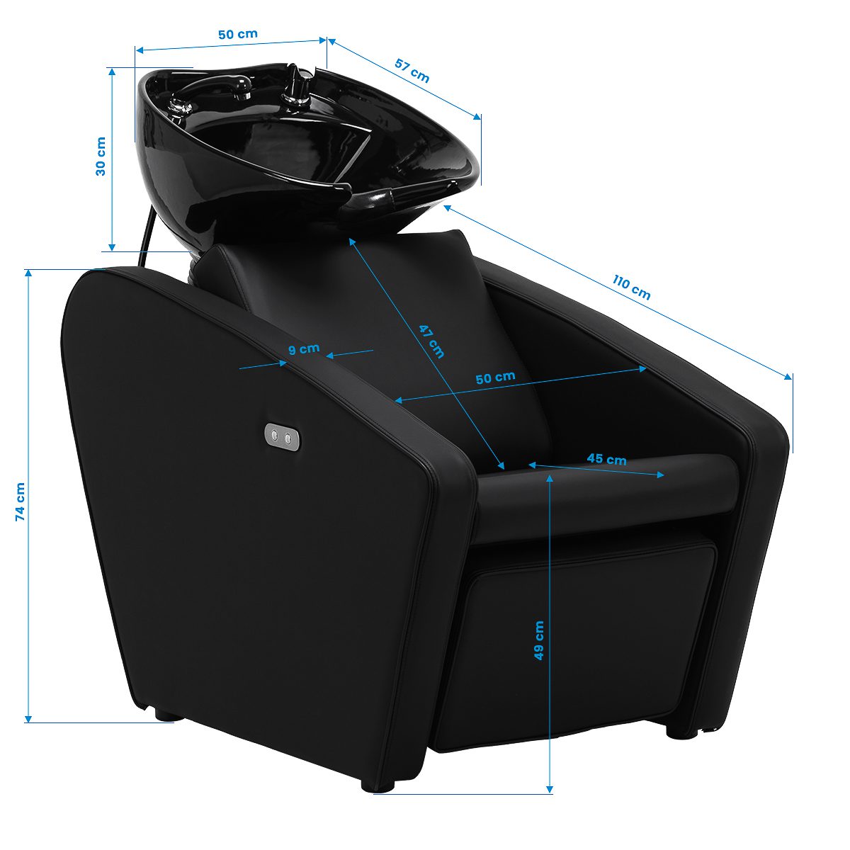 Gabbiano Emma -kampaamopesupaikka on suunniteltu hoito- tai värjäyskäsittelyjen mukavaan suorittamiseen ja asiakkaalle mukavan asennon takaamiseen pidempien toimenpiteiden aikana. Optimaaliseen kulmaan sijoitettu selkänoja tukee erinomaisesti selkärankaa. Oikein muotoiltu, kestävällä vaahtomuovilla täytetty istuin takaa korkean käyttömukavuuden, ja verhoillut käsinojat auttavat asiakkaan hartioiden oikeaan asentoon. Musta keinonahkaverhoilu takaa monivuotisen kestävyyden ja helpon puhdistettavuuden. Pesupaikan siro muoto sopii erinomaisesti elegantteihin kampaamosisustuksiin. Settiin sisältyy täydellinen musta ja krominvärinen hana- ja suihkuosasarja, mukaan lukien hana, suihkupää ja niihin kuuluvat letkut, jotka takaavat täydellisen työkalusarjan.