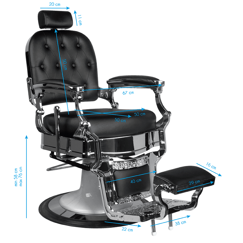 Näyttävä ja mukava parturituoli, jossa on kallistettava selkänoja ja korkeuden säätö. Kulutusta kestävä ja helppohoitoinen korkealaatuinen tekonahka. Painava ja painoa kestävä valurautainen jalusta.