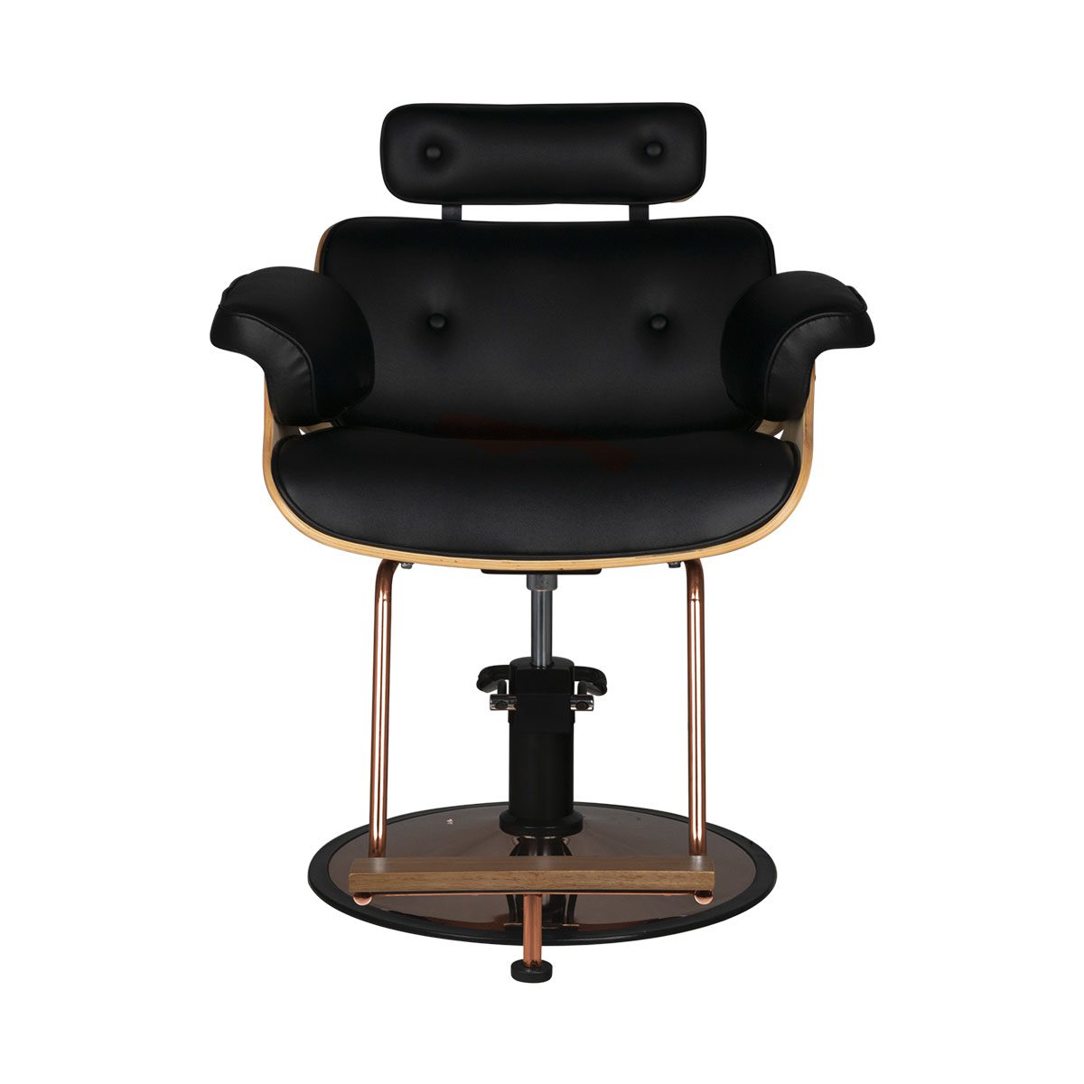 Elegantti ja erittäin mukava kampaamotuoli. Päällystetty korkealaatuisella mustalla keinonahalla.