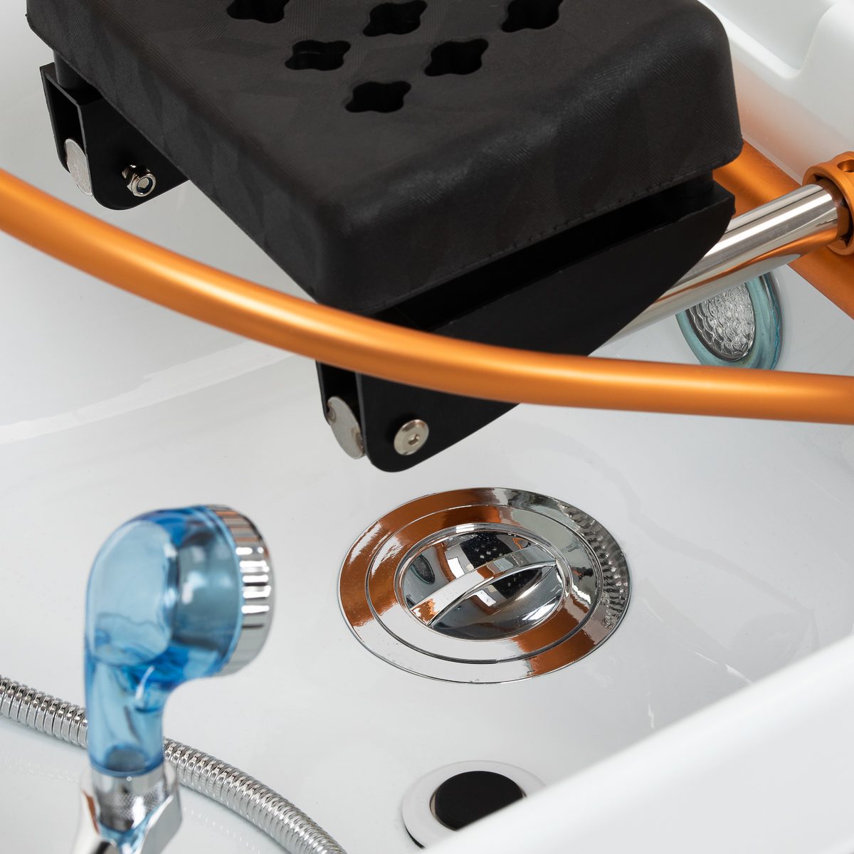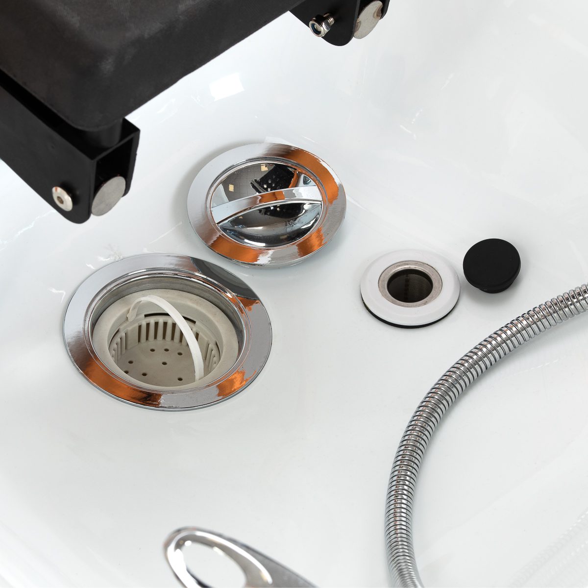Säädettävä kaari tuottaa jatkuvan vesivirran, joka hieroo hiuspohjaa ja auttaa lievittämään jännitystä. Vesi kiertää suljetussa järjestelmässä pesualtaasta takaisin kaareen.