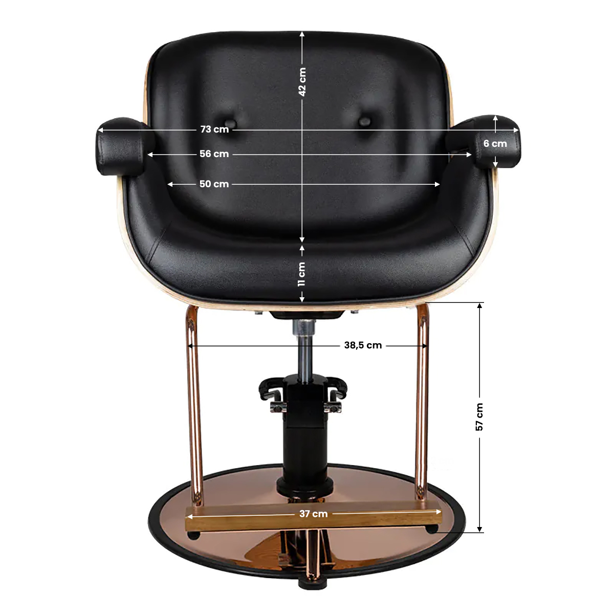 Mukava ja moderni Gabbiano Venice kampaamotuolissa on puiset yksityiskohdat, säädettävä niskatuki ja istuimen korkeus.