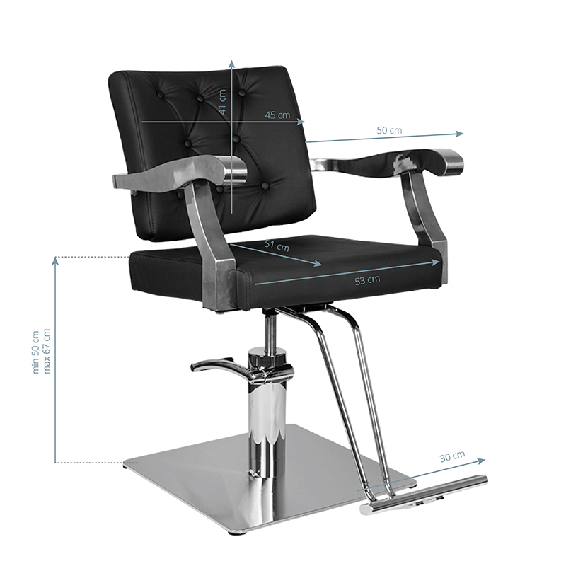 Tyylikäs kampaamotuoli, täydellisesti viimeistelty ja laadukkaista materiaaleista valmistettu, tyydyttää vaativimmankin asiakkaan maun.. Mukava, pehmeä istuin ja jalkatuki.