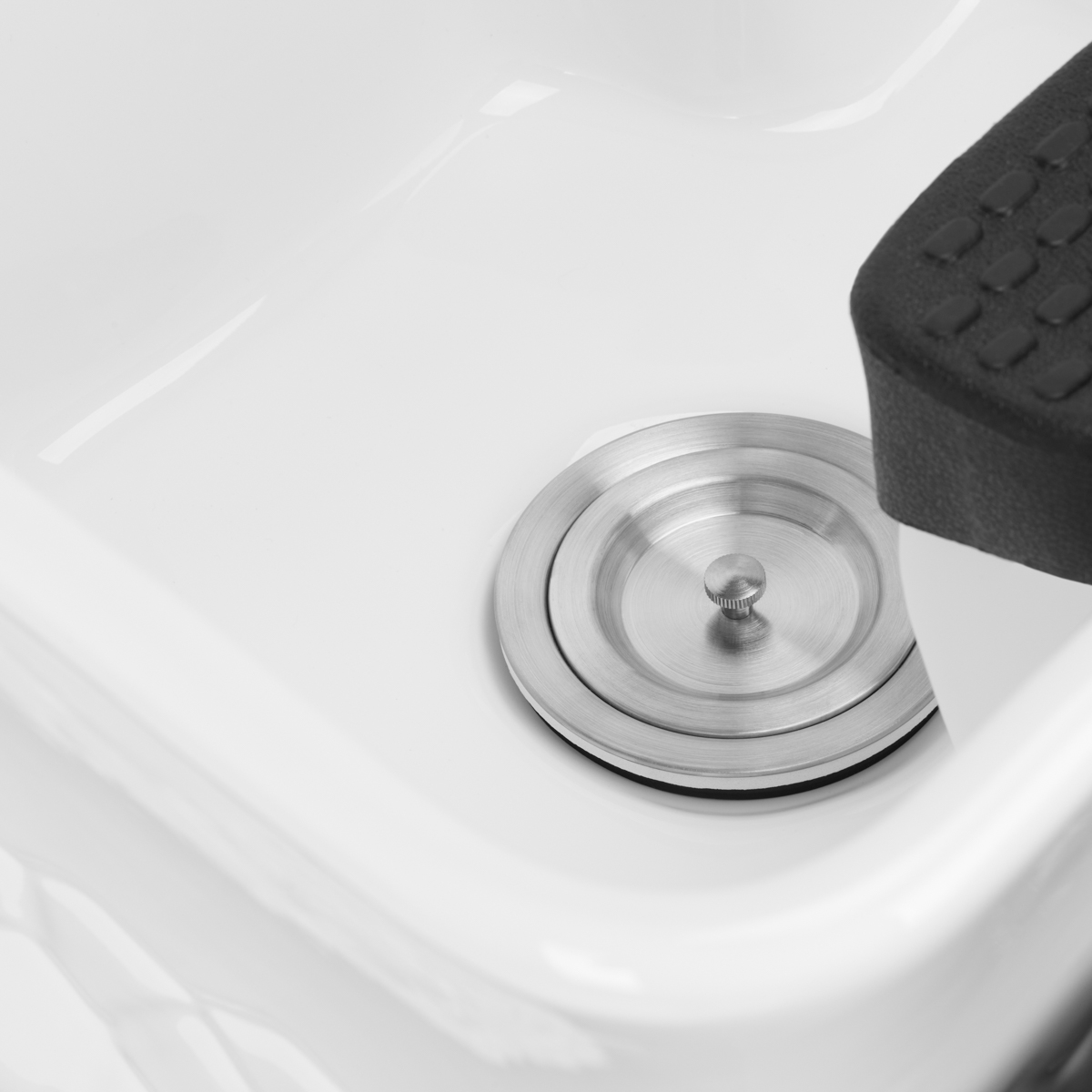 Moderni Gabbiano pesupaikka on yhdistelmä toimivuutta ja italialaista eleganssia. Valmistettu korkealaatuisista materiaaleista ja täydellisesti viimeistelty. Pehmeä ja erittäin mukava istuin on päällystetty korkealaatuisella mustalla tekonahalla. Valkoinen keraaminen allas ja kultaiset käsinojat. Lakatut metallipinnat.