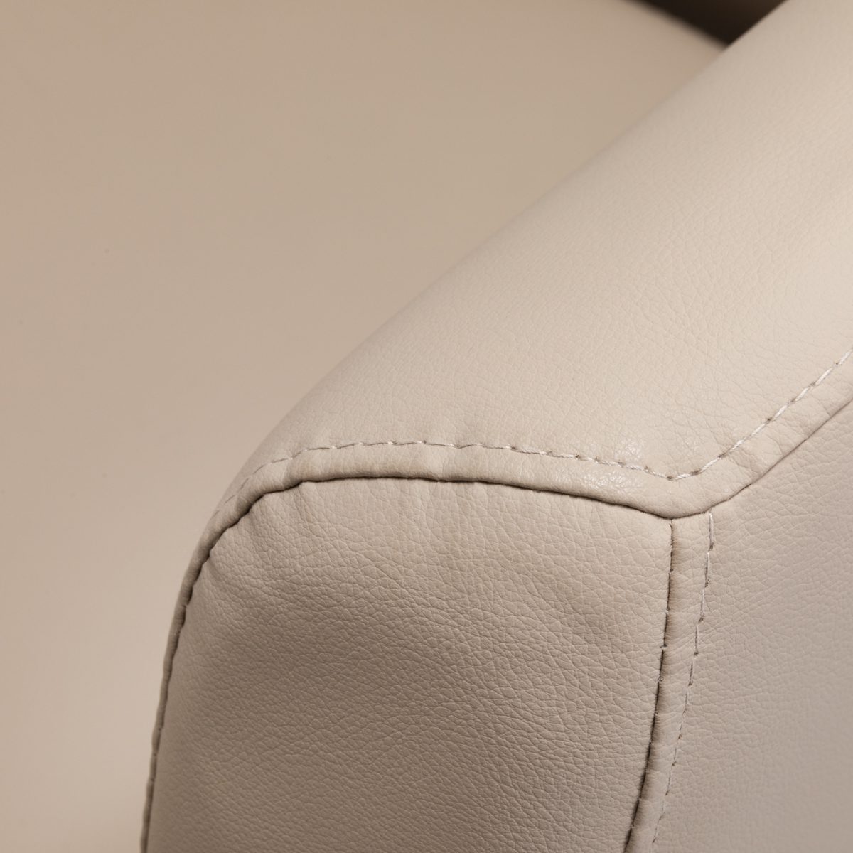 Tuolin verhoilussa on käytetty miellyttävän tuntuista ja kosteutta kestävää synteettistä nahkaa beigen sävyissä. Käytetyt materiaalit ovat helppohoitoisia ja kulutusta kestäviä, mikä tekee tästä tuolista ihanteellisen valinnan ammattikäyttöön. Gabbiano Monaco -kampaamotuolin pelkistetty design tekee siitä tyylikkään lisän jokaiseen kauneus- tai parturisalonkiin.
