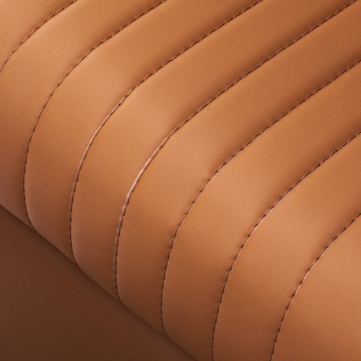 Jalustan vankka rakenne takaa vakauden ja korkean käyttömukavuuden. Muotonsa pitävällä vaahtomuovilla täytetty istuin ja pehmeällä, mattapintaisella keinonahalla verhoilu yhdistävät kestävyyden ja mukavuuden. Viimeistelyyn käytetyt materiaalit ovat kosteudenkestäviä, lujia ja helppoja puhdistaa, minkä ansiosta tuoli sopii erinomaisesti päivittäiseen työhön. Tyylikkäät tikkaukset ja vaaleanruskea verhoilu antavat sille ainutlaatuisen luonteen, joka sopii täydellisesti modernien parturiliikkeiden sisustukseen.