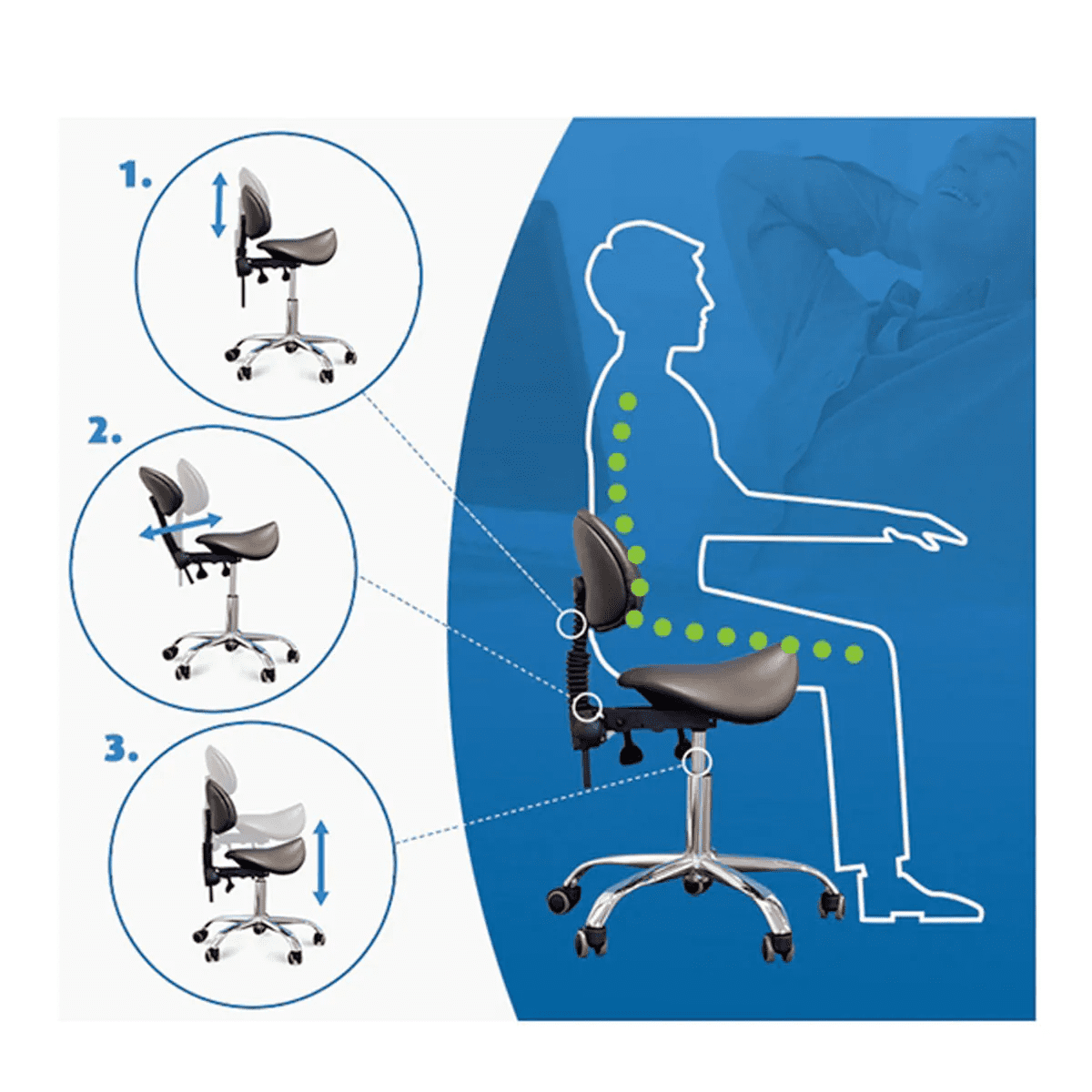 Selkätuellinen korkealaatuinen ja vakaa satulatuoli.