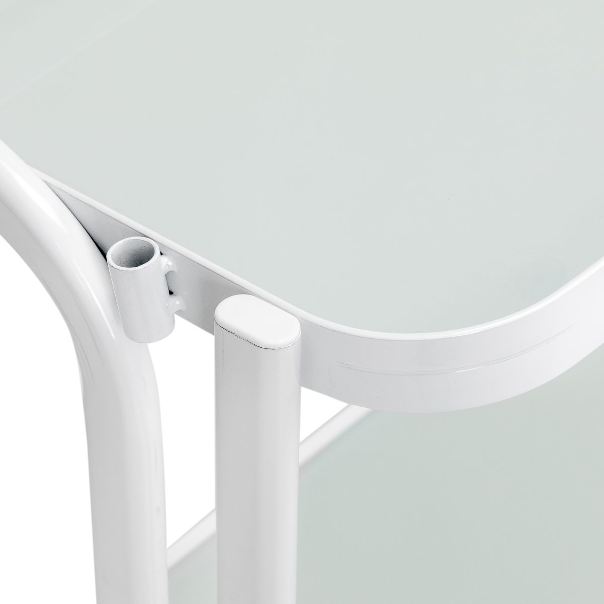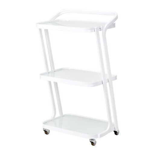 Yksinkertainen muotoilu, kestävä valkoisen sävyinen alumiinirunko ja lasihyllyt tekevät pöydästä sekä tyylikkään että helposti puhdistettavan. Neljän pyörän ansiosta pöytää voi liikutella vaivattomasti, mikä helpottaa työskentelyä hoitotilassa. Laadukkaat materiaalit varmistavat kestävyyden ja vakauden. Elegantti viimeistely ja mielenkiintoisesti kallistettu runko viimeistelevät pöydän ilmeen ja kohottavat koko tilan estetiikkaa.