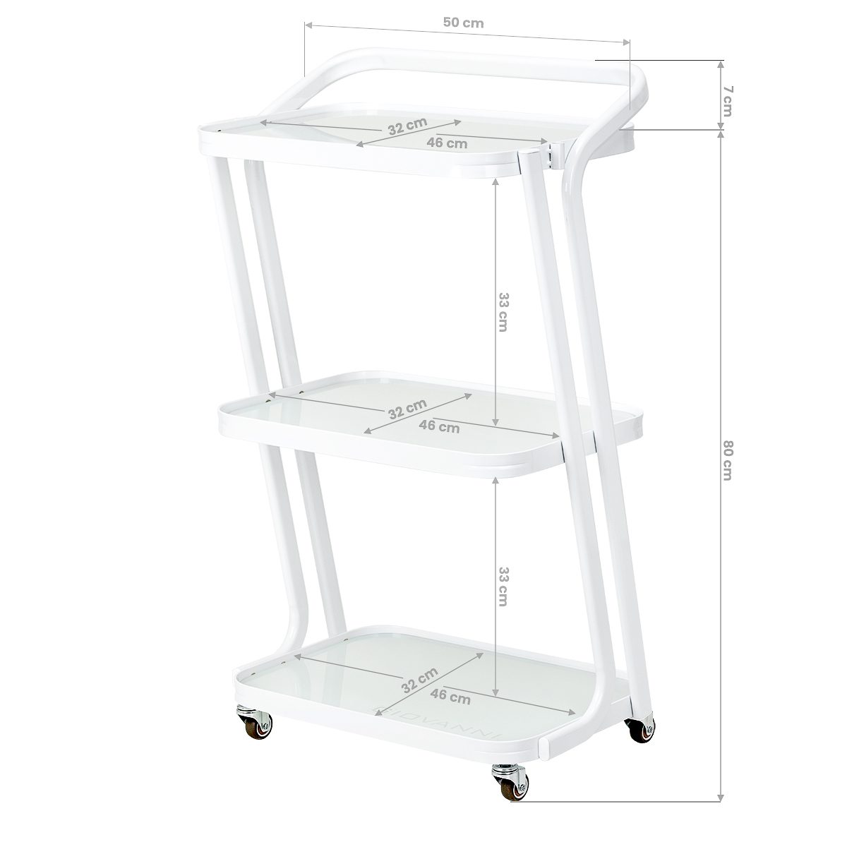 Giovanni H6701 -tarvikepöytä on käytännöllinen kaluste, joka sopii erinomaisesti kauneushoitoloihin ja SPA-hoitohuoneisiin. Kevyt mutta tukeva rakenne tukee tehokasta työskentelyä. Kolme lasihyllyä tarjoavat kätevän säilytysratkaisun kosmetiikalle, tarvikkeille ja laitteille, joita tarvitaan hoitojen aikana. Minimalistinen viimeistely tuo tilaan ammattimaisen ilmeen.