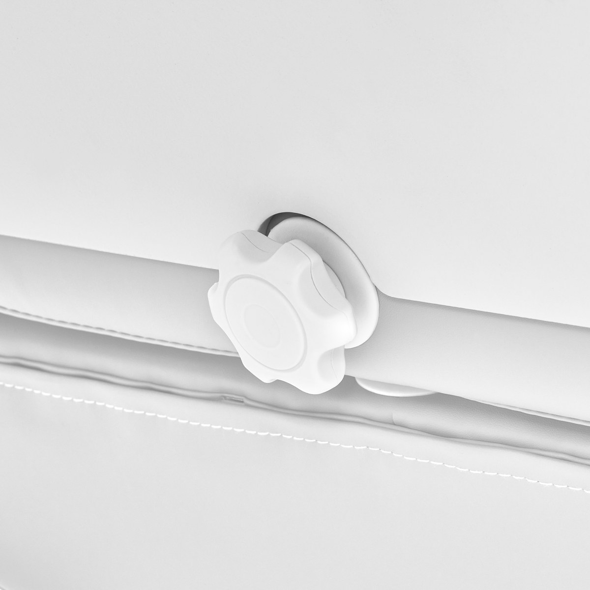 Hoitotuoli Azzurro 891 kaukosäätimellä valkoinen verhoiltu laadukkaalla keinonahalla, joka kestää kosteutta ja puhdistamista.