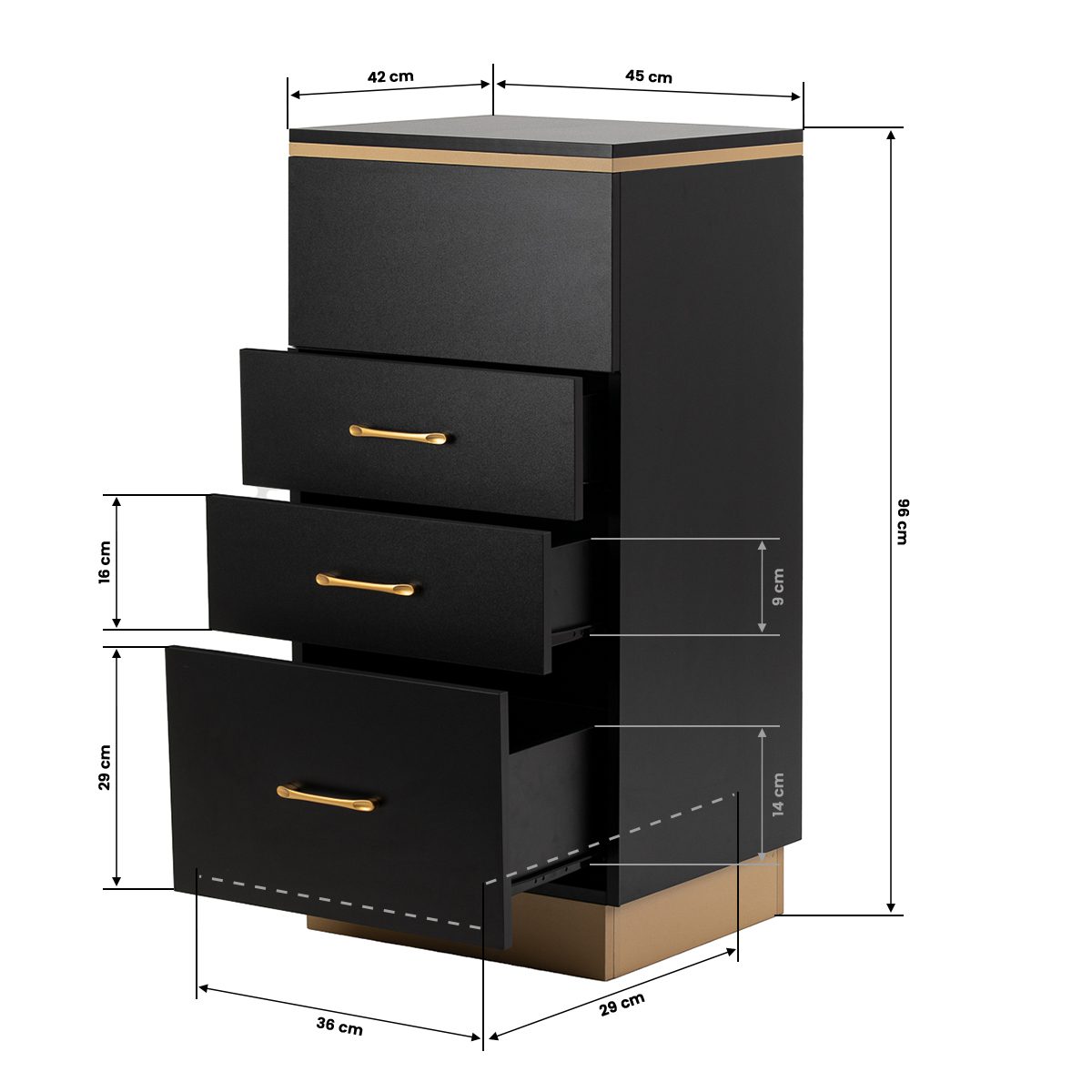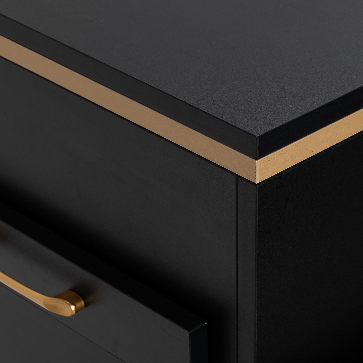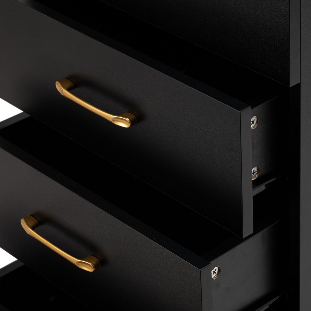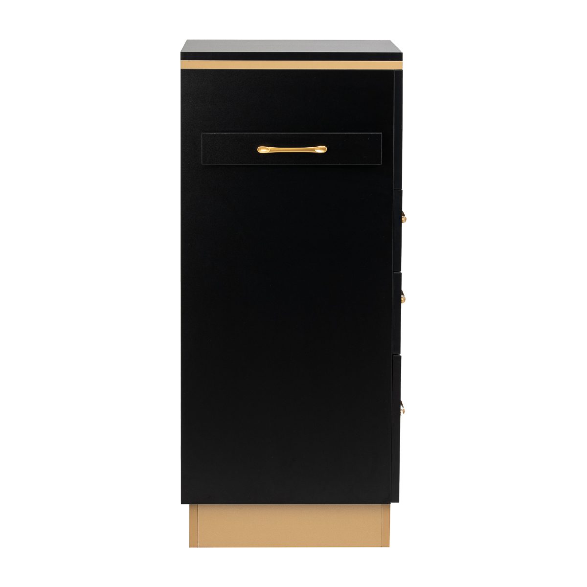 Muotoilun ja toiminnallisuuden yhdistelmä Klassisen mustan ja kullan yhdistelmä antaa apupöydälle modernin ja arvokkaan luonteen, joka sopii täydellisesti sekä minimalistisiin että näyttävämpiin sisustuksiin. Vankka rakenne varmistaa vakauden, ja sileä pinta helpottaa huonekalun puhtaanapitoa. Kultaiset vetimet eivät ainoastaan korosta eleganttia muotoilua, vaan varmistavat myös jokaisen laatikon vaivattoman avaamisen. Se on käytännöllinen ratkaisu kampaamoon, jossa järjestys, välineiden vaivaton saatavuus ja työpisteen estetiikka ovat tärkeitä.
