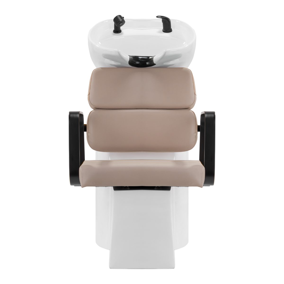 Keraamisen altaan kallistuskulmaa voidaan säätää. Allas on naarmuja kestävä ja erittäin helppo puhdistaa. Kalteva selkänoja antavat tukea ja mukavuutta hiusten pesussa. Niskakolon musta pehmuste suojaa keraamisen pinnan kylmyydestä. Integroitu suihkuletku.