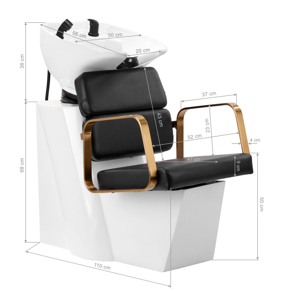 Tyylikäs Porto-GM musta/kulta kampaamon pesupaikka on käytännöllinen kampaamon huonekalu.