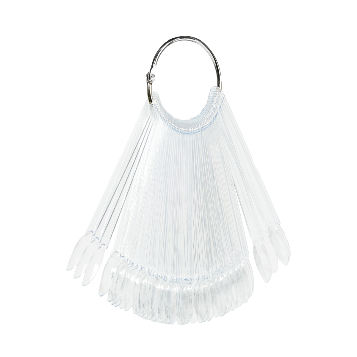 Läpinäkyvä malli mahdollistaa klassisten ja hybridilakojen, pölyjen ja geelien kaikkien värien esteettisen esittelyn. Se koostuu 50 yksittäisestä kynsikärjestä, jotka ovat soikean muotoisia ja kooltaan oikeita kynsiä. Se on kiinnitetty käytännöllisellä, irrotettavalla renkaalla, joka helpottaa koko tavaran säilyttämistä. Jokainen kärki on valmistettu kestävästä muovista.
