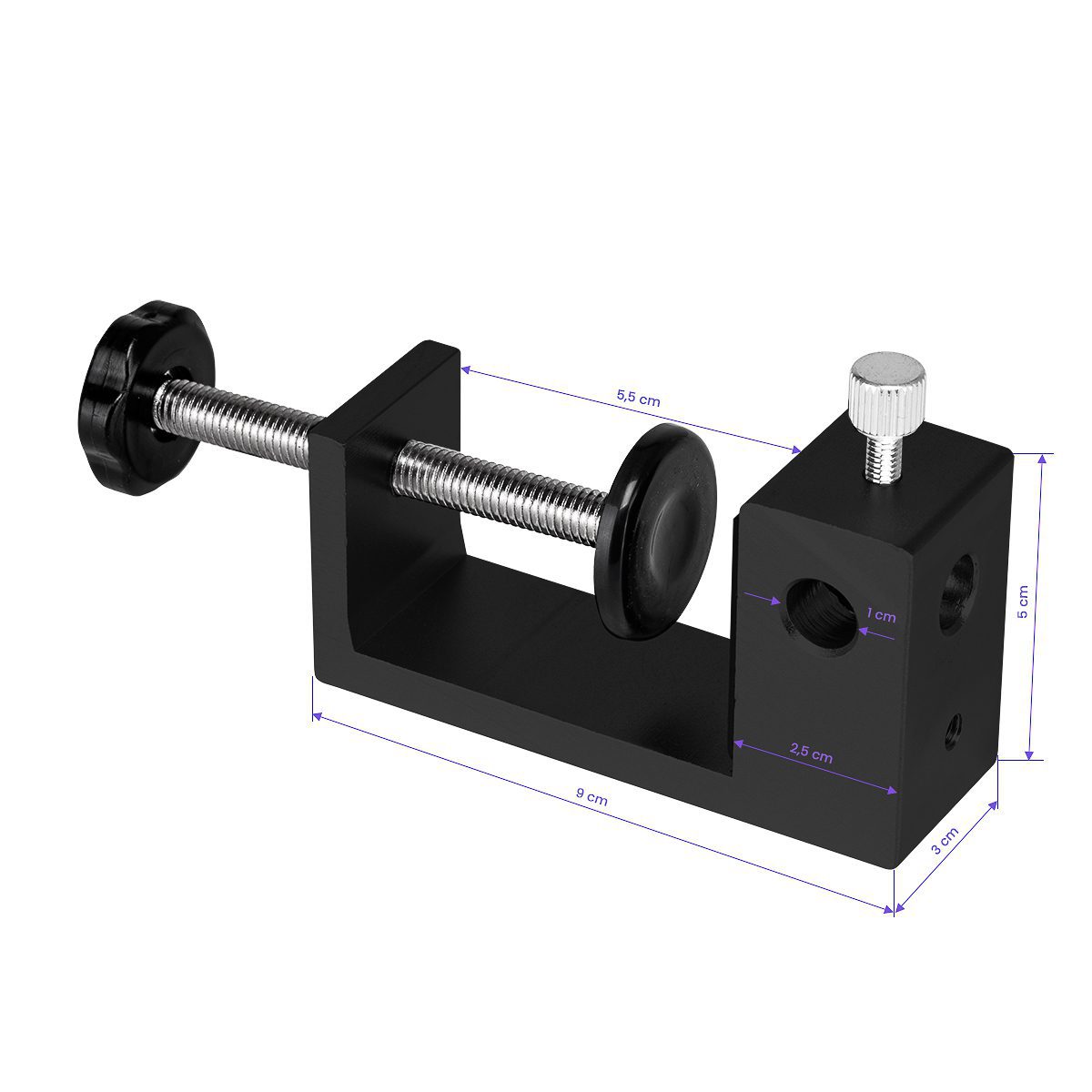 Lampussa on tukeva puristin, jolla sen voi kiinnittää nopeasti ja varmasti pöytäpintaan. Kiinnityksen maksimileveys on 5,5 cm, joten se sopii useimpiin työtasoihin. Kiinnityksen voi sijoittaa eri kohtiin, mikä mahdollistaa yksilöllisen ja tarkan asettelun.