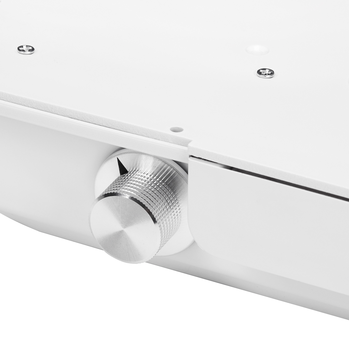 Valkoinen korkeakiiltoinen pöytälevy ja geometriset, mustat jalat antavat sille keveyttä ja modernin ilmeen. Kevyen muotonsa ansiosta pöytä sopii sekä pieniin että avariin tiloihin, korostaen niiden ylellistä luonnetta. Se on erinomainen sijoitus sekä estetiikkaan että päivittäisen työn mukavuuteen.