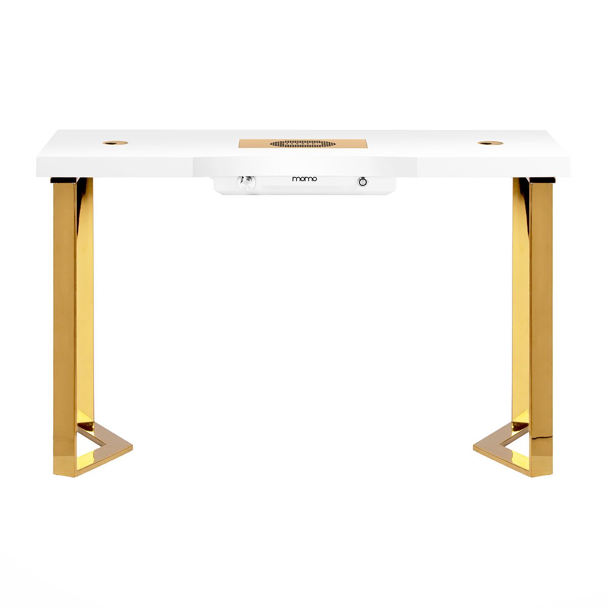 Kynsipöytä Momo 05 on ainutlaatuinen yhdistelmä yksinkertaisuutta ja tyyliä, suunniteltu vaativille käyttäjille. Minimalistinen muotoilu kultaisilla yksityiskohdilla antaa sille elegantin ilmeen. Sileä, korkeakiiltoinen pöytälevy takaa mukavuuden kauneushoitolan päivittäisten tehtävien suorittamisessa.