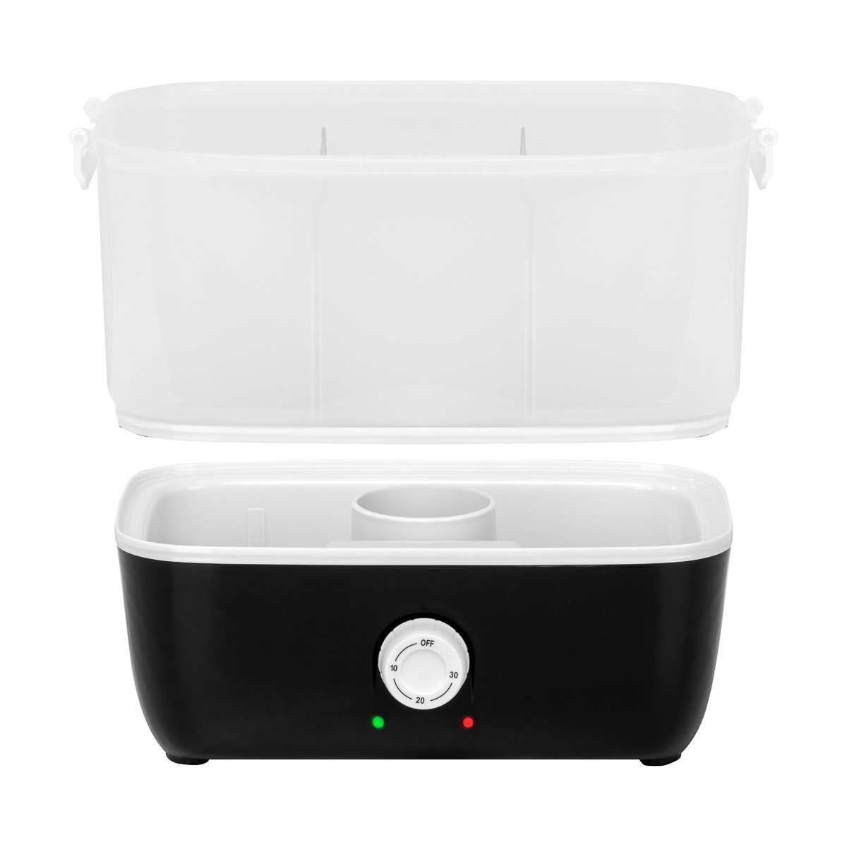 Laite lämpenee nopeasti saavuttaen hetkessä maksimilämpötilansa, mikä nopeuttaa työskentelyä erityisesti ammattilaisille. Ajastimen avulla voit valita lämmitysajaksi 10, 20 tai 30 minuuttia, minkä jälkeen laite sammuu automaattisesti turvallisuuden takaamiseksi. Lämmitin on jaettu kolmeen osaan, mikä helpottaa tilankäyttöä ja mahdollistaa useamman pyyhkeen samanaikaisen lämmittämisen. LED-merkkivalot ja selkeät merkinnät minimi- ja maksimitäyttötasosta lisäävät käyttömukavuutta ja turvallisuutta.