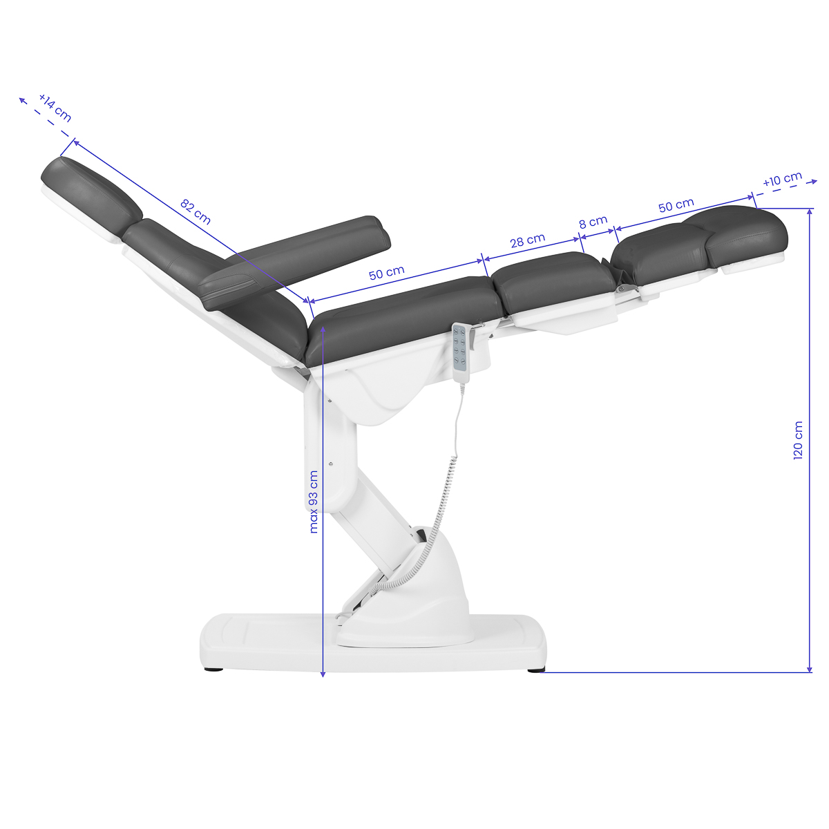 Hiljaiset 4 sähkömoottoria mahdollistavat istuimen nopean ja kätevän säädön kaukosäätimellä. Vaihtoehtoisesti on mahdollista liittää jalkakytkin (koodi 133026).