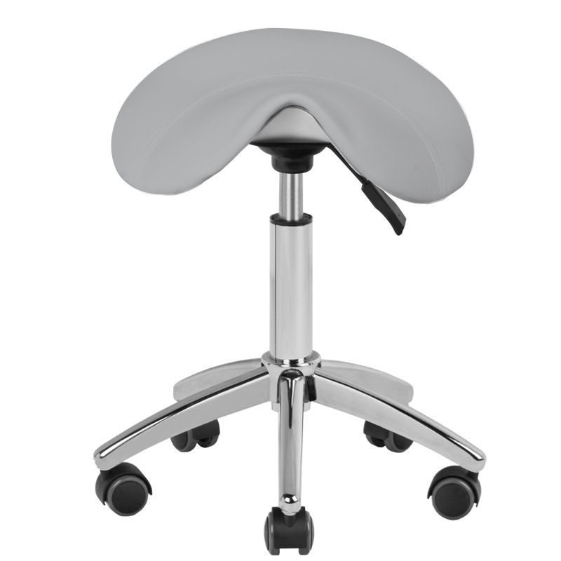 Ilman selkänojaa, profiloidulla istuimella, kumipyörillä.